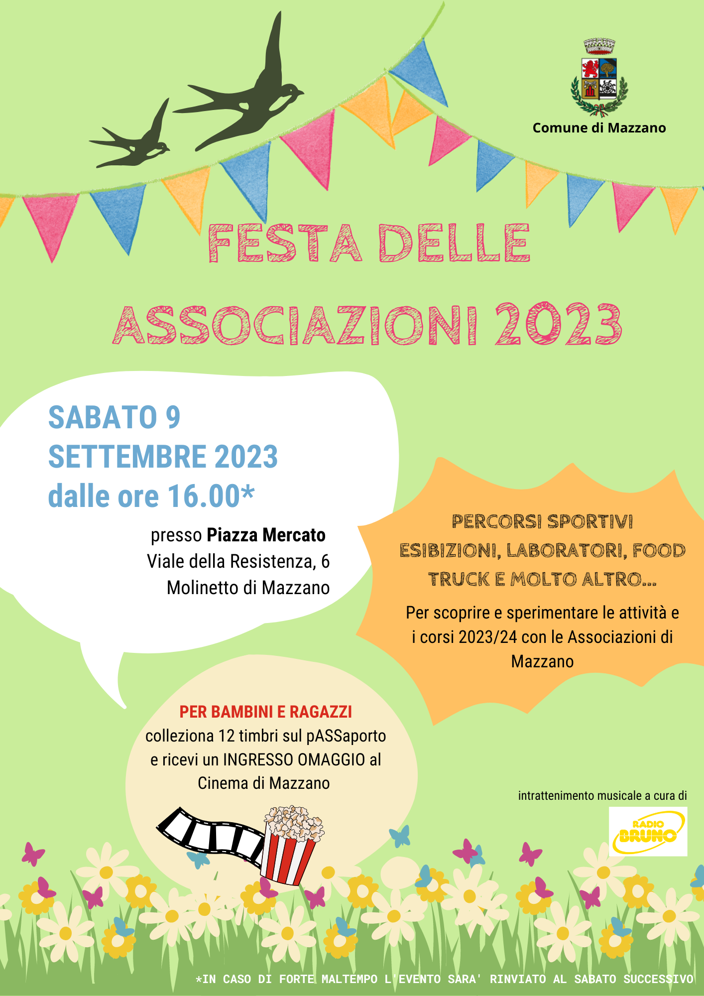 Il 9 settembre dalle ore 16 alle ore 21 ci sarà la Festa delle Associazioni.